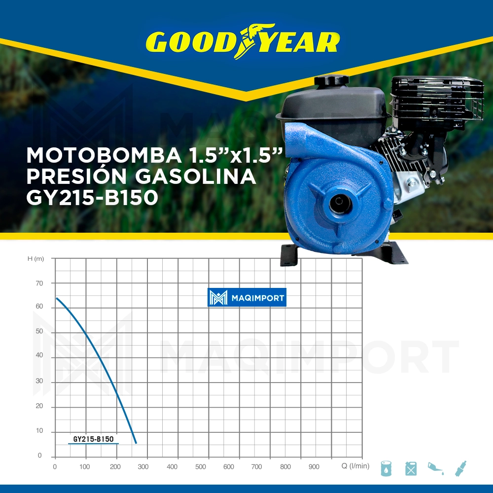 MotoBomba Gasolina GOODYEAR 7hp Presión 1.5″ x 1.5″ Presión Max 85psi/60mts Caudal Max. 360 Litros/min